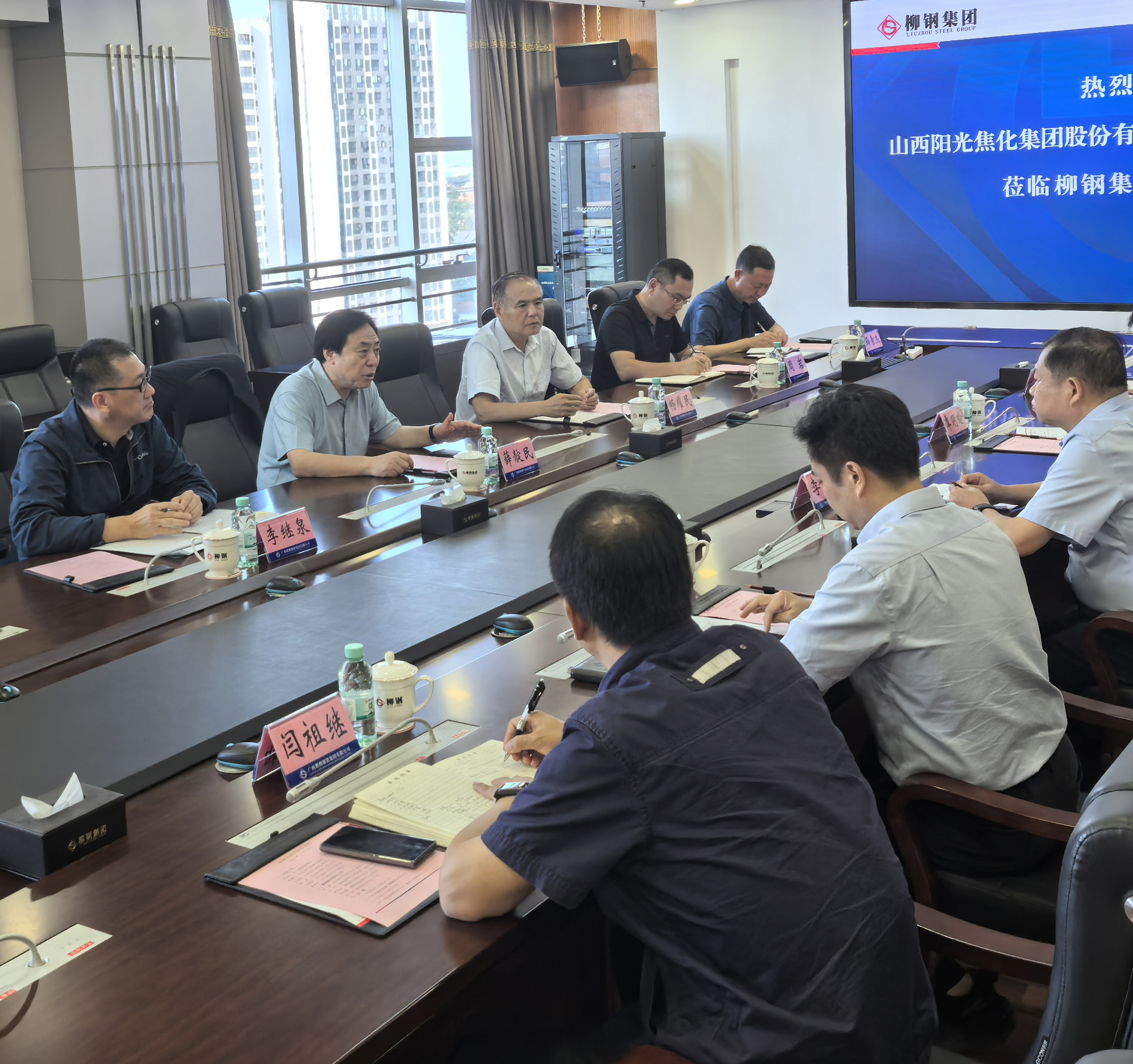 董事長薛靛民一行在柳鋼調研座談